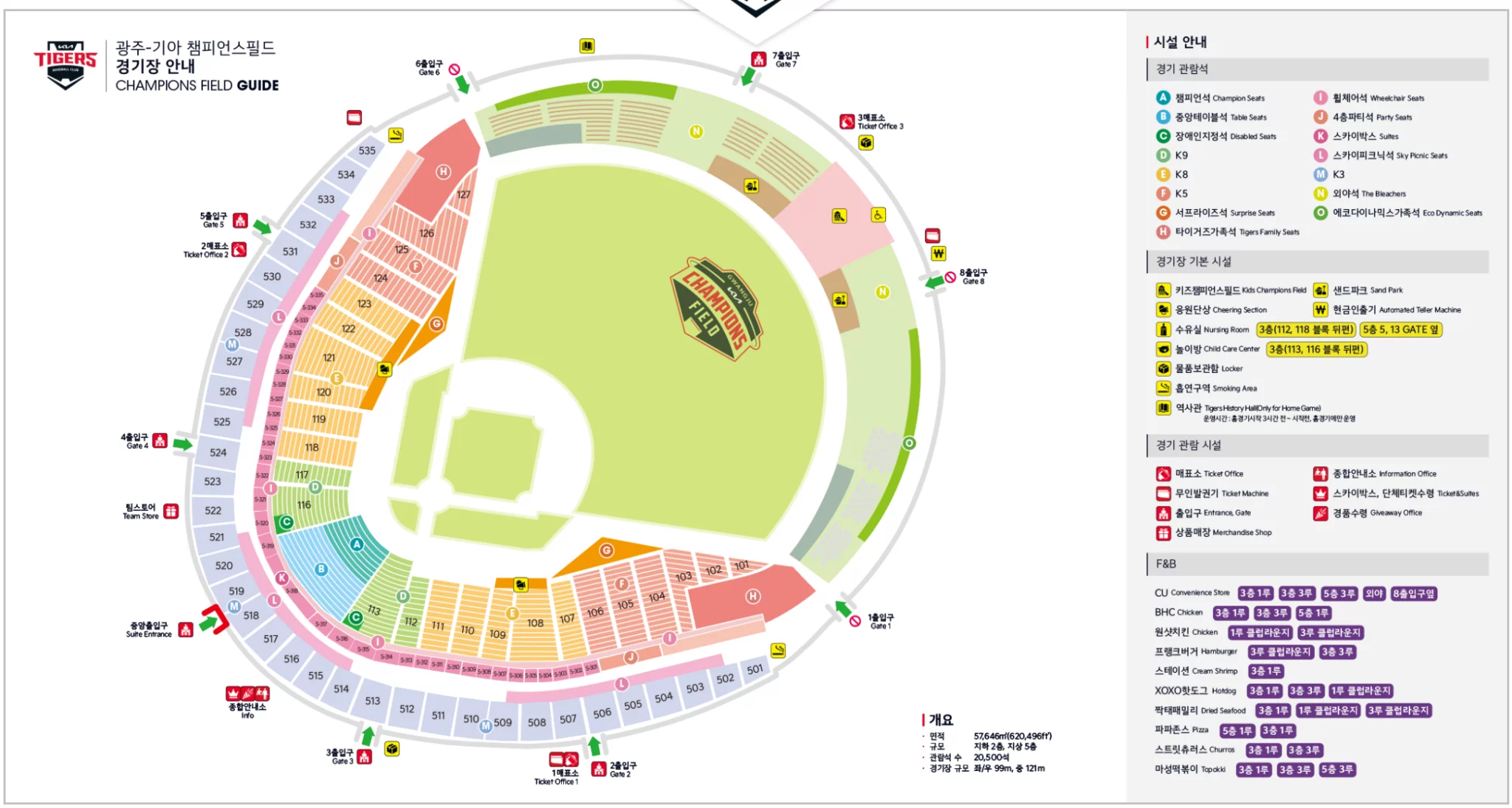 🏟️ 좌석 구분 광주-기아 챔피언스 필드에는 다양한 좌석이 준비되어 있어 원하는 스타일에 맞춰 선택할 수 있습니다.