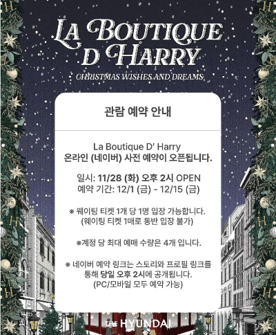 * 네이버 예약 링크는 인스타그램 스토리와 프로필 링크를 통해 당일 (11.28) 오후 2시에 공개됩니다.