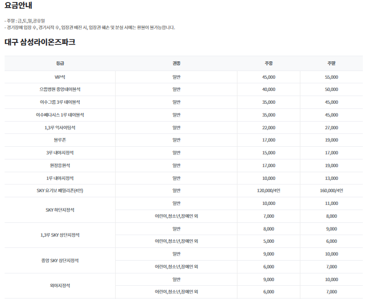 삼성 라이온즈의 홈구장인 대구 삼성 라이온즈 파크에서 경기를 관람하고자 하시는 분들을 위해 티켓 예매 방법, 좌석별 가격, 그리고 응원석 위치에 대해 안내해 드리겠습니다.