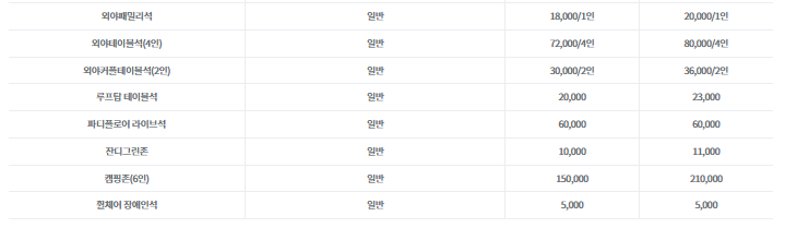 2. 좌석별 가격 안내