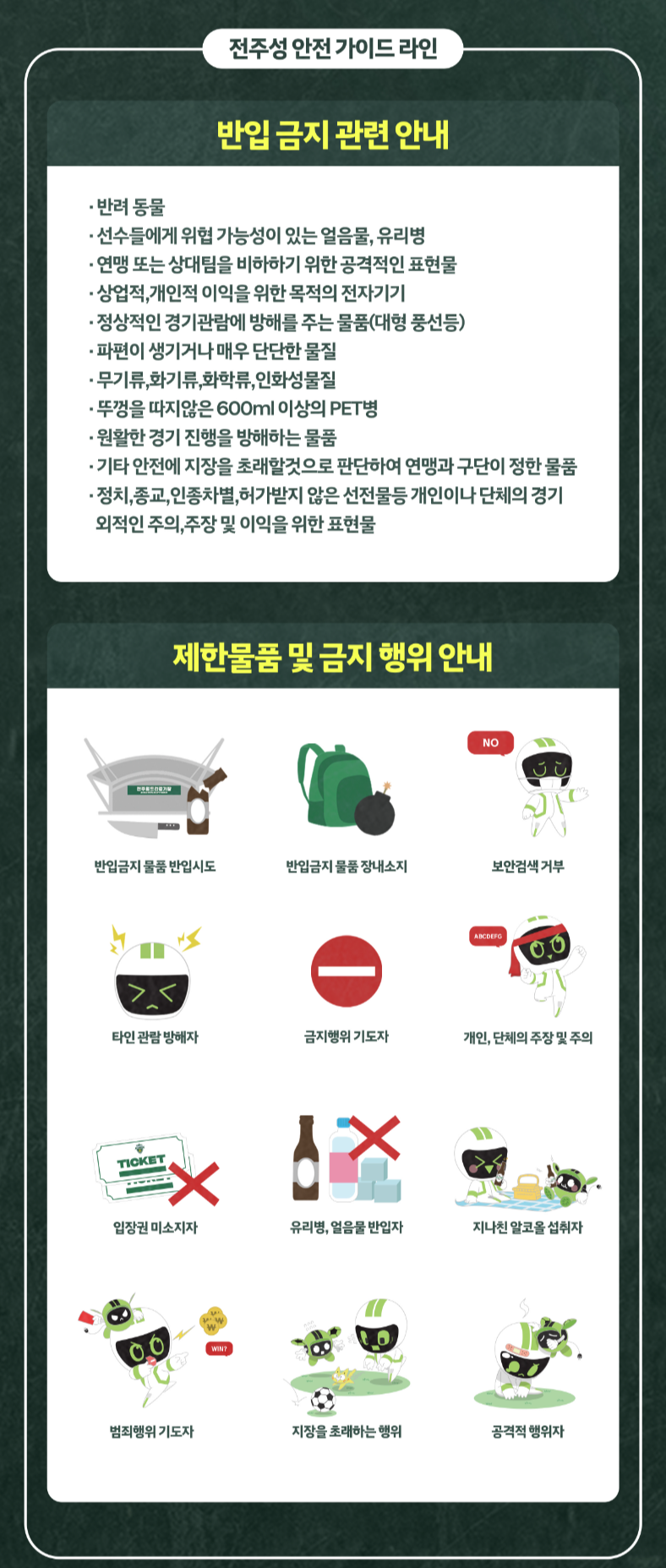 경기 시작 2시간 전부터 후반전 시작 15분까지 입장할 수 있습니다.