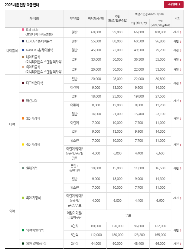 장애인, 유공자, 군·경, 경로자: 일부 좌석에 대해 할인 혜택이 제공됩니다.