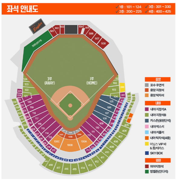 "한화 이글스, 이글스 파크 야구 예매 방법 및 (홈, 원정) 응원석 안내"