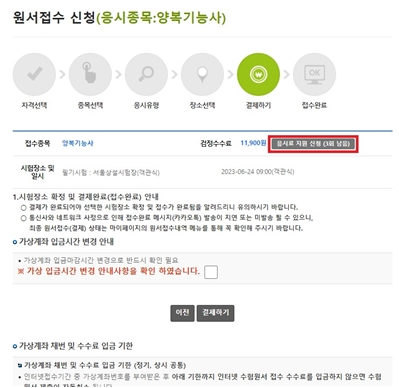 - 응시료 결제하기(신용카드, 가상계좌 등)