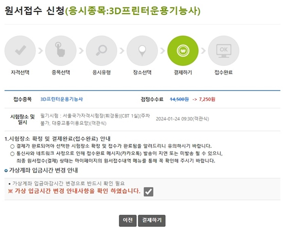 '2024 국가기술자격증 응시료 50% 할인 신청하기'
