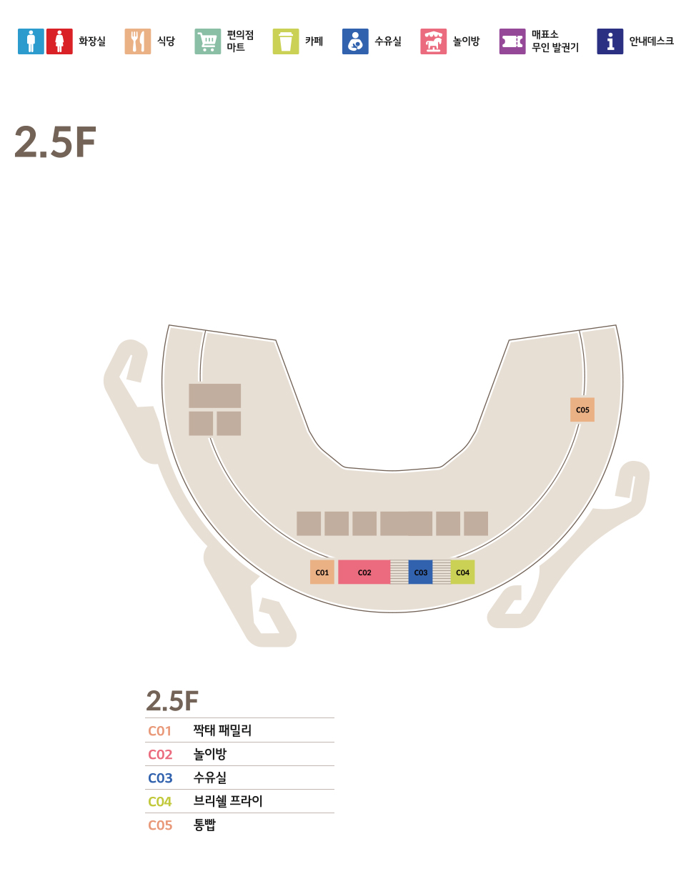 편의점과 일부 프랜차이즈 매장이 있어 간단한 간식을 구매하기 좋습니다.